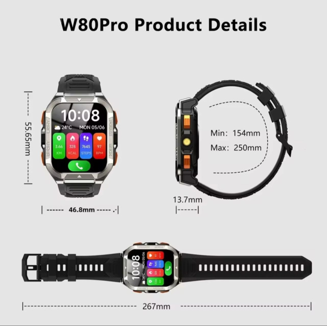 Годинник Blackview W80 Pro GPS для чоловіків, жінок, спортивний годинник на відкритому повітрі зі світлодіодним ліхтариком, 1,91-дюймовий TFT-дисплей, позиціонування Bluetooth
